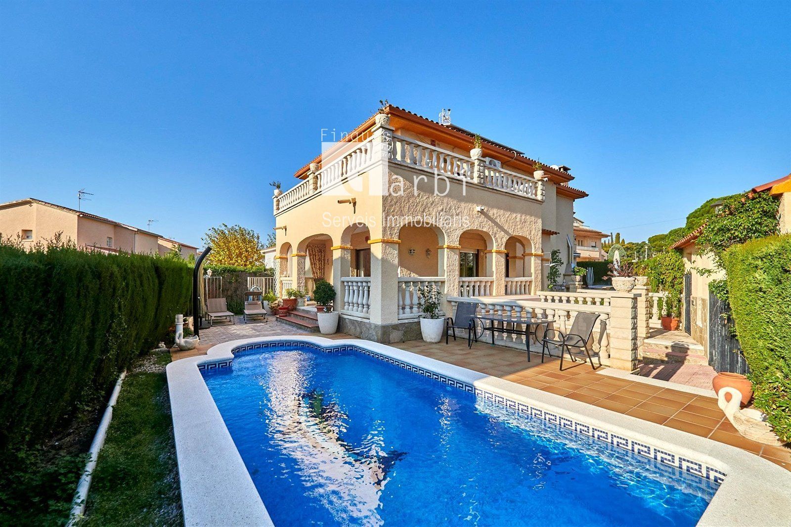 Te presentamos una magnífica vivienda esquinera situada en uno de los entornos más valorados de El Vendrell. A pocos minutos de las playas de San Salvador y muy cerca del centro de Calafell-Playa, disfrutarás de todos los comercios, servicios y comodidades al alcance...La casa se distribuye en tres plantas y destaca por su amplitud, luminosidad y una planificación pensada para el confort...En la planta de entrada encontramos un recibidor espacioso que da paso a un salón de 35 m² con chimenea electrica y acceso a un amplio porche con vistas al jardín y a la piscina. En esta misma planta se ubican una práctica despensa, el comedor que conecta con la cocina independiente con salida directa al jardín, y un baño completo...La planta superior acoge la zona de noche: una habitación sencilla, un baño completo y tres habitaciones dobles con armarios empotrados. La habitación principal destaca por su terraza privada y un espacioso baño en suite...En la planta sótano se encuentra el garaje, con espacio adicional para almacenamiento...La vivienda es ideal para familias o para quienes buscan espacio y comodidad. Las escaleras cuentan con silla elevadora desde el garaje hasta la planta superior, proporcionando total accesibilidad para personas con movilidad reducida...En el exterior disfrutarás de un auténtico oasis privado: piscina de obra, jardín que rodea toda la casa, zona de barbacoa y una excelente privacidad gracias a su parcela esquinera...Para garantizar el máximo confort durante todo el año, la casa dispone de calefacción de gas natural, aire acondicionado con bomba de calor y placas solares, que mejoran la eficiencia energética del hogar...Una propiedad completa, cuidada al detalle, lista para entrar a vivir y ubicada en un entorno privilegiado, tranquilo, bien comunicado y muy cerca del mar.