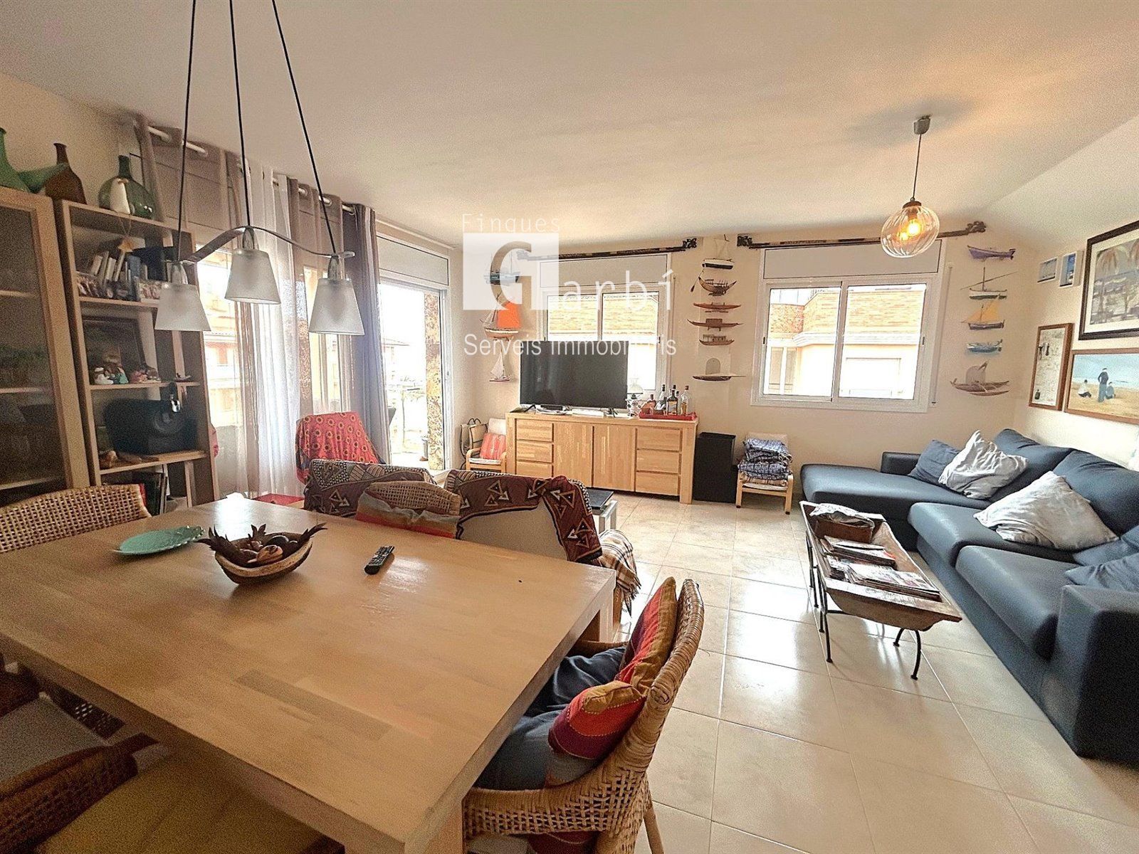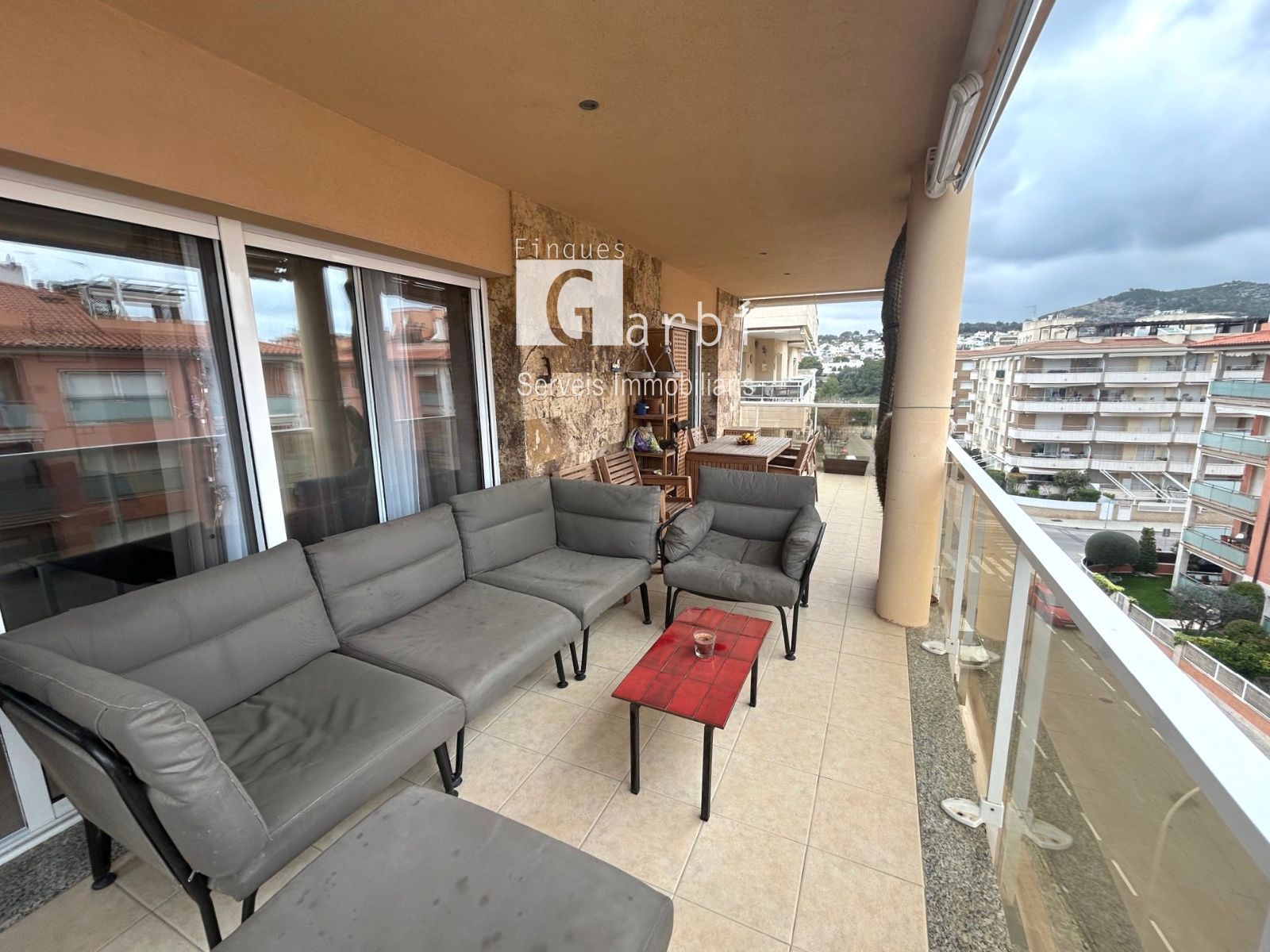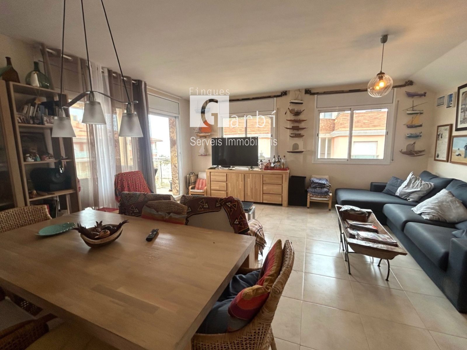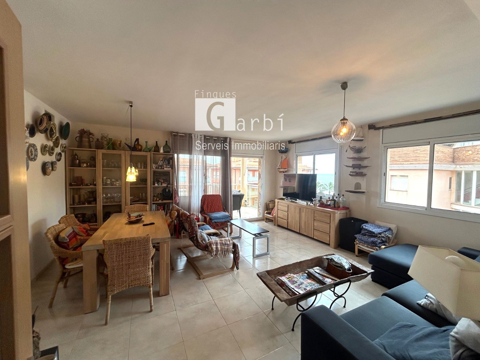 Uno de los grandes protagonistas de esta vivienda es su luminoso salón, un espacio amplio y agradable que se llena de luz natural durante gran parte del día. Desde aquí podrás disfrutar de espectaculares vistas al mar, creando un ambiente único donde relajarte, compartir momentos con familia y amigos o simplemente contemplar el Mediterráneo.